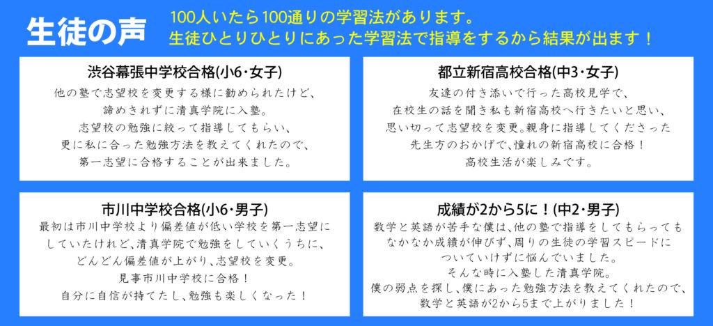 生徒が100人いたら100通りの学習法があります。